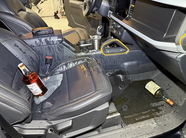 I was about to take a couple bottles of whiskey to a buddy and one exploded all over the Bronco… glad I have the badlands package.